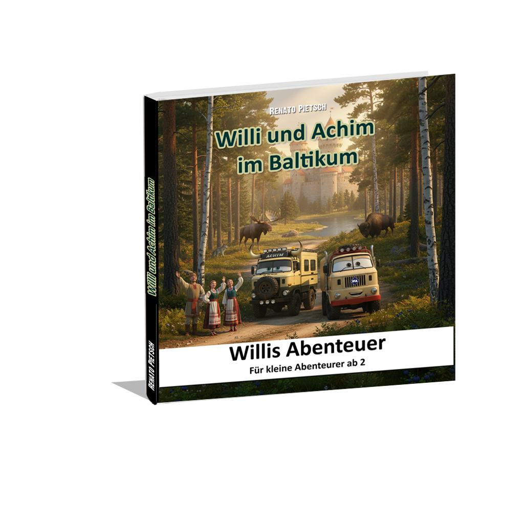 Willi und Achim im Baltikum Die beiden IFA-LKW Willi und Achim begeben sich auf eine spannende Expedition, die sie in die faszinierenden Länder des Baltikums führt. Das Abenteuer beginnt für die beiden Freunde mit einem emotionalen Besuch in ihrer Heimat, dem historischen Motorenwerk, das für die beiden wie ihr eigenes Herz ist. Nach einem herzlichen Wiedersehen mit ihrem Freund Cowboy Markus sind sie bereit, in die Ferne zu rollen. Ihre abenteuerliche Tour führt sie zuerst durch die Weiten Polens, wo sie eine Nacht an einem großen See verbringen und die hektische Betriebsamkeit der Großstadt Warschau erleben. In Litauen erleben sie, wie sich die Landschaft allmählich verändert und staunen über beeindruckende Sehenswürdigkeiten wie eine riesige Kathedrale mit Tausenden von Gräbern und ein faszinierendes Museum voller alter Flugzeuge. Die Reise führt sie weiter nach Lettland, wo sie die frische Seeluft der Ostsee atmen und malerische Windmühlen sehen. Dann geht es nach Estland, wo sie eine mächtige Burg in Narva entdecken, die direkt an der Grenze zu Russland liegt. Hier nimmt das Abenteuer eine spannende Wendung, als ein unerwarteter Wintereinbruch die gesamte Landschaft in Schnee hüllt. Dank ihres Allradantriebs meistern die tapferen LKW die glatten Straßen und beweisen, was in ihnen steckt. Auf dem Weg zurück lassen sie die Reise entspannt ausklingen, indem sie am Strand durch den Sand und das Wasser fahren und in Polen einen Nationalpark besuchen, um die majestätischen Wisente zu sehen. Das Buch endet mit einem letzten Besuch bei ihrem Freund Cowboy Markus, bevor Willi und Achim nach Tausenden von Kilometern sicher in ihre Garage zurückkehren. Ein packendes Abenteuer, das Freundschaft, Entdeckerlust und die Schönheit des Reisens feiert und dabei junge Leser für fremde Länder und die Natur begeistert.
